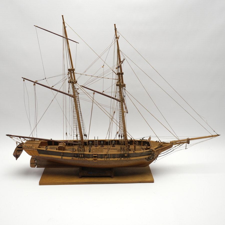 Een handgebouwd modelschip, voorstelling van La Toulounaise, een Franse marineschoener uit 1823 die in de Spaanse oorlog vocht