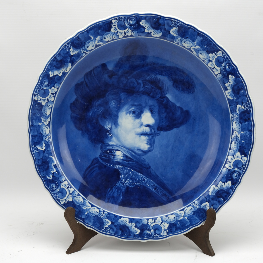 Groot handbeschilderd portret schotel, Porceleyne Fles.