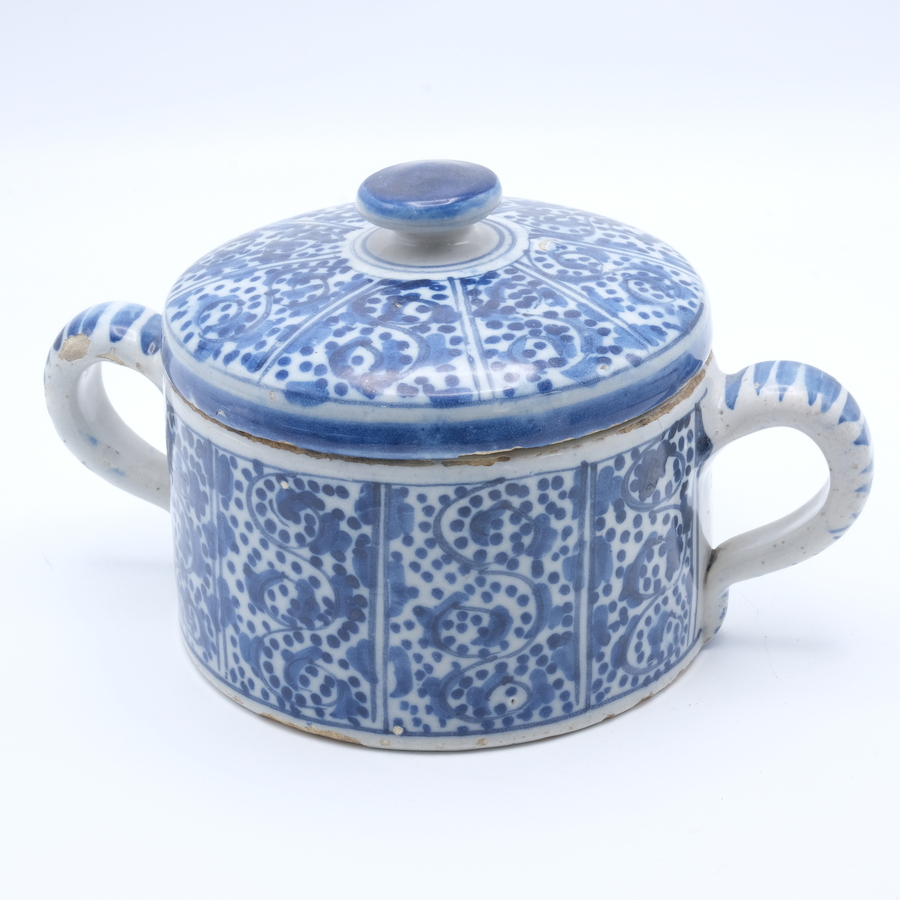 Een 18e eeuwse Delfts aardewerken boterpot.