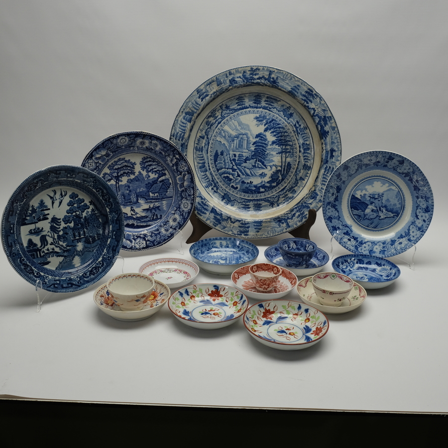 Lot divers 18e en 19e eeuws Engels porselein, waaronder borden en kop en schotels, beschilderd en met transferdecor.