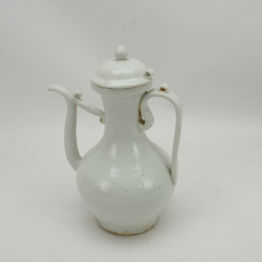 Chinees porseleinen Blanc de Chine wijnkan met losse deksel. 20e eeuws.