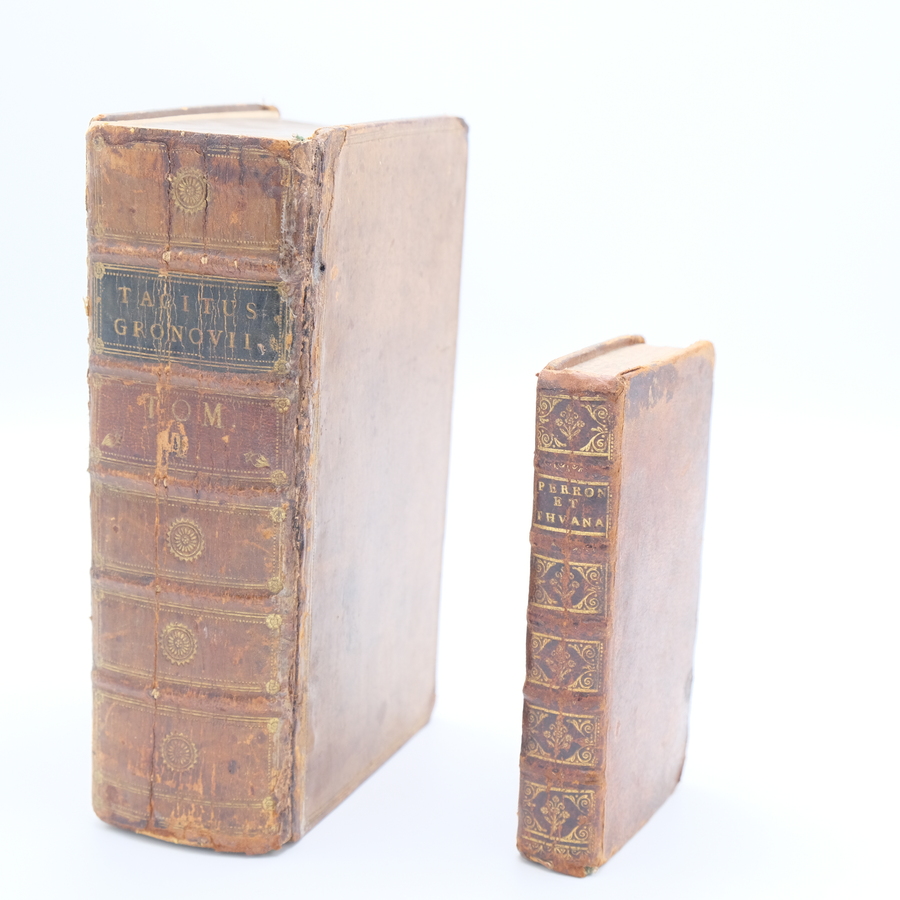 Lot van twee boeken: ‘Perroniana et Thuana’, uit 1694 en ‘Taciti Opera’, 1672