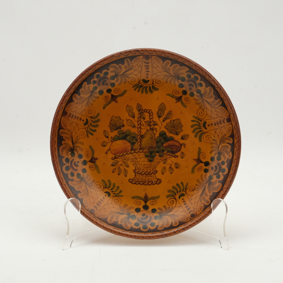 Een 20e eeuws koudbeschilderd aardewerken bordje, gemerkt N.A.W. Workum. Vermoedelijk Jan Welles.