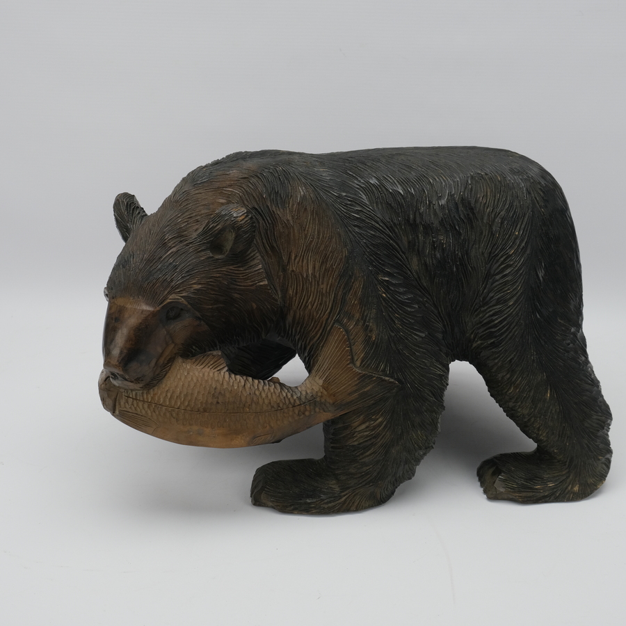 Bruine beer met vis gesigneerd onder de poot.
