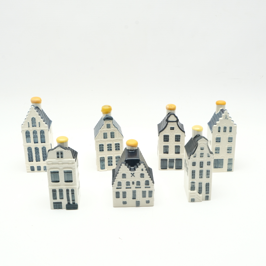 Lot van zeven porseleinen KLM huisjes, nrs. 30, 32, 38, 51, 52, 71 en 87