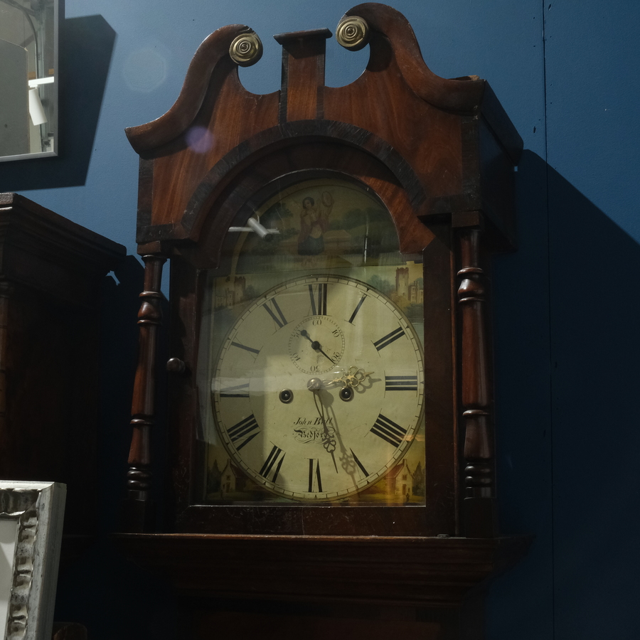 Engelse 19e eeuwse staand horloge in ingelegde kast.