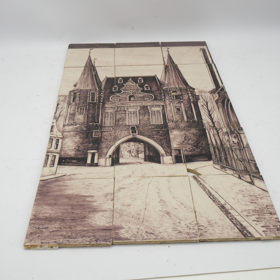 Een vroeg 20e eeuws vijftienpas tegeltableau, de Broederpoort te Kampen