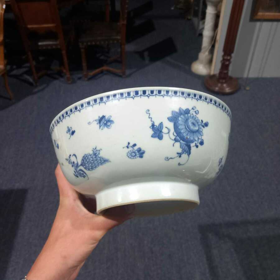 Twee 18e eeuwse Chinees porseleinen kastkommen. Blauw/wit en famille rose met floraal en manderin decors.