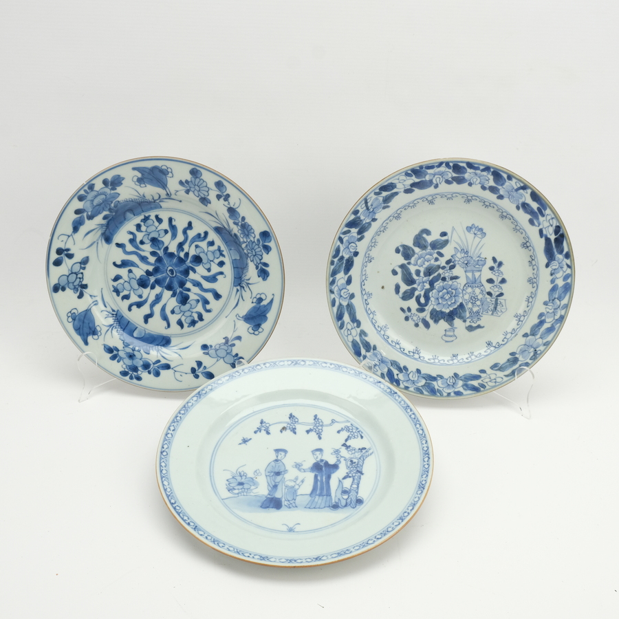 Drie 18e eeuwse Chinees porseleinen borden