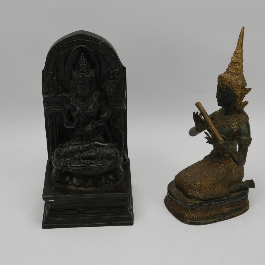 Bronzen zittende Boeddha en Thai Boeddha.