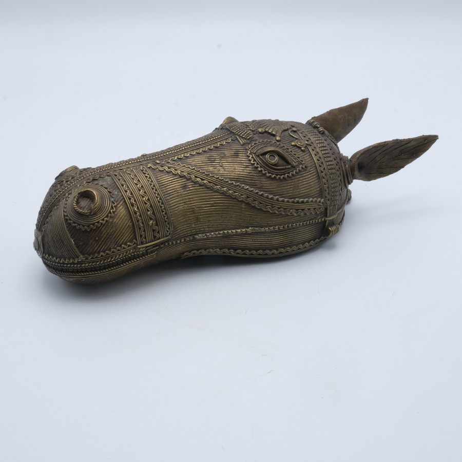 Een 20e eeuws Indisch bronzen sculptuur, kop van een ezel. Lengte 27 cm