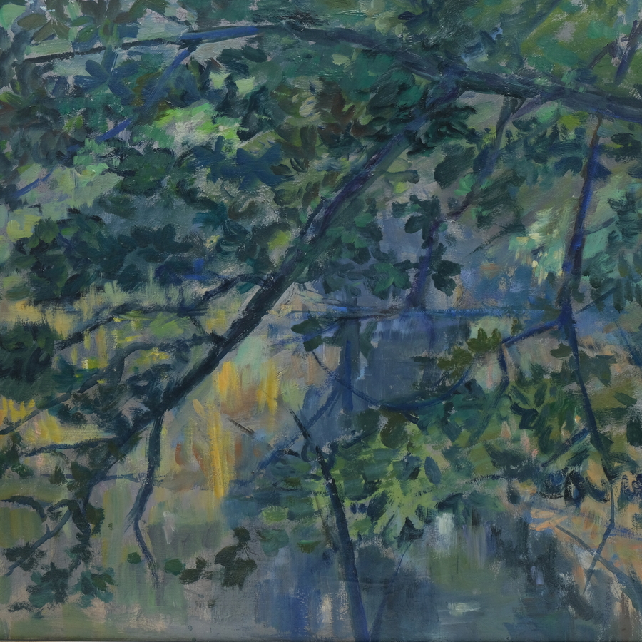 Schilderij, olieverf op doek in baklijst. 'Bosvijver'. Rechtsonder gesigneerd Jeanne Bieruma Oosting (Leeuwarden 1898 - Almen 1994). Datering, ca. 1975. Herkomst: galerie het Kunstcentrum, Den H...