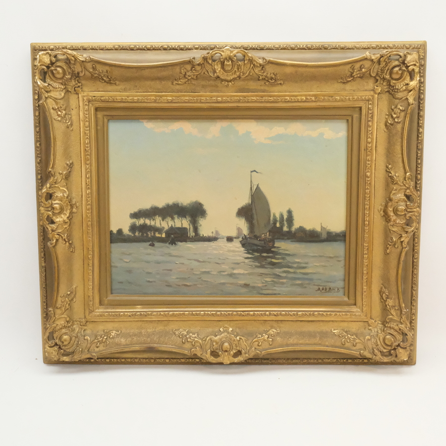 Schilderij, olieverf op doek in vergulde ornamentenlijst. 'Bij Terhorne'. Gesigneerd Broer de Boer (1877-1953)