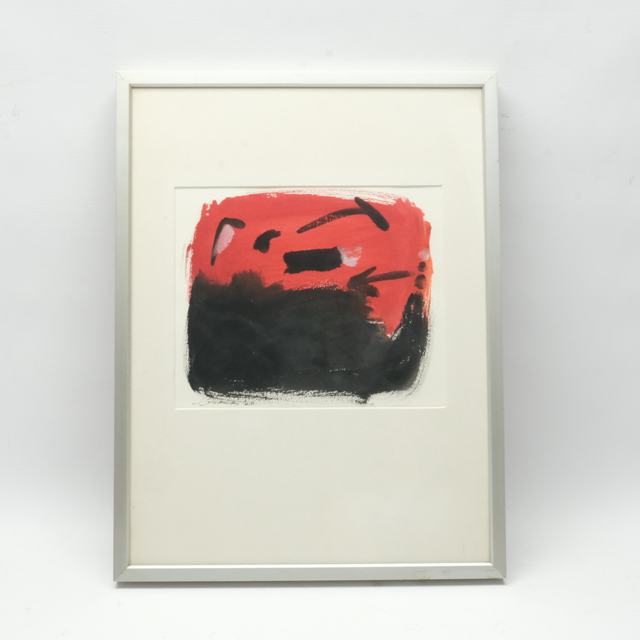 Gouache op papier, abstracte voorstelling. Op de achterzijde titel 'Red Evening'. Linksonder gesigneerd Eugene Brands (Amsterdam 1913-2002) en gedateerd 1968