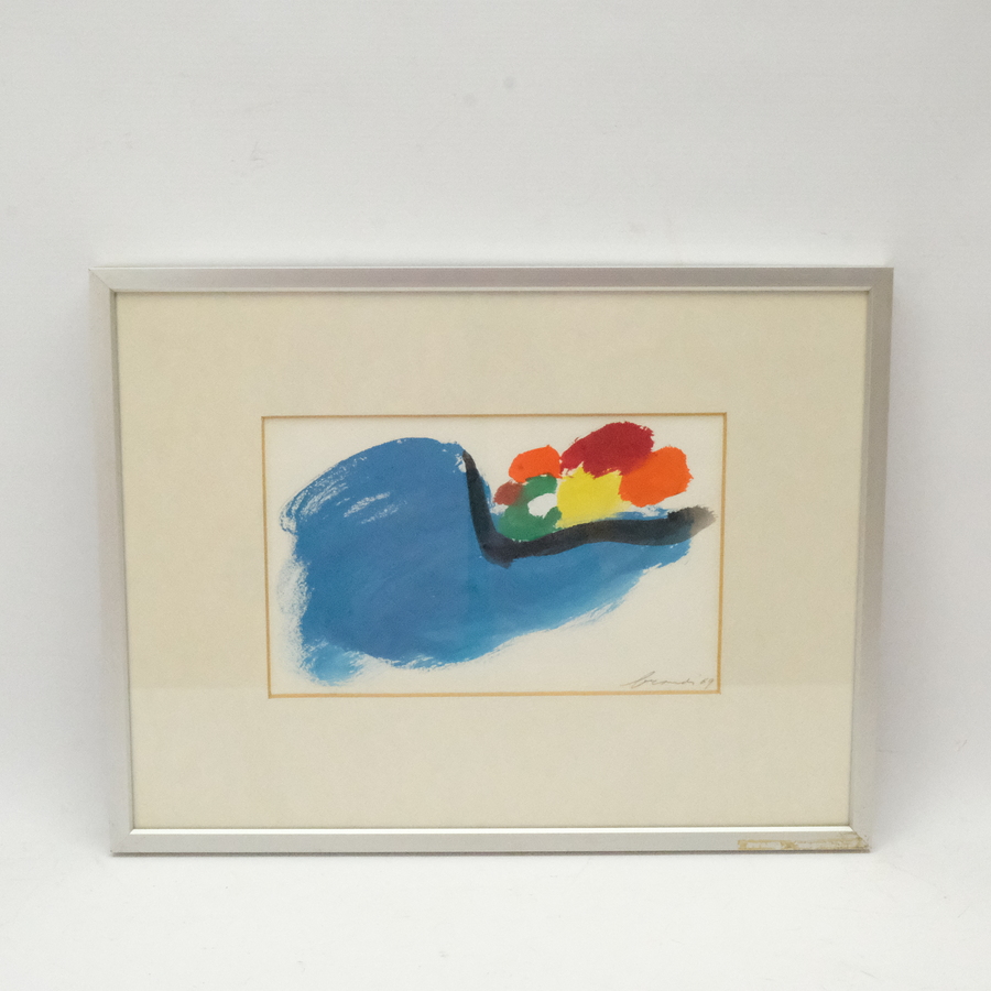 Gouache, abstracte compositie. Rechtsonder gesigneerd Eugene Brands, gedagteerd 1969
