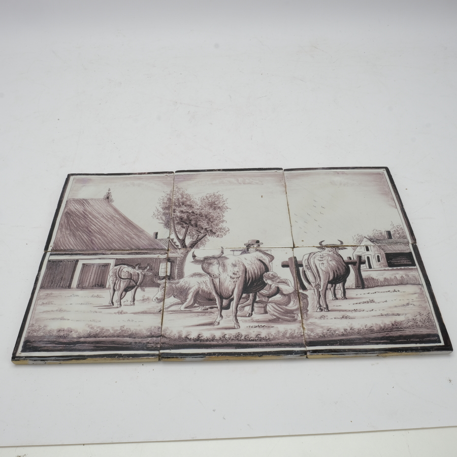 Een antiek 19e eeuws mangaan tegeltableau, boederij. Utrecht/Friesland