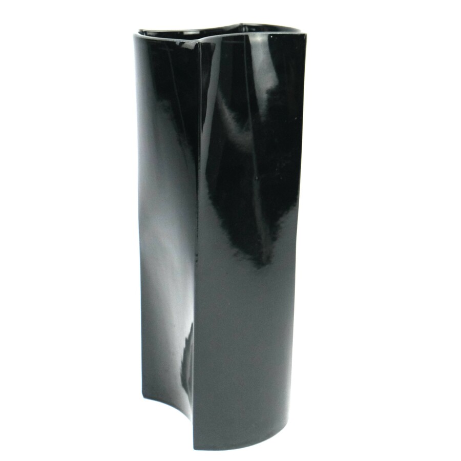 Een porseleinen vaas met geknepen hals en voet. Met zwarte glazuur. Gesigneerd. Van der Vaart 1978 (= Jan van der Vaart (1931-2000).