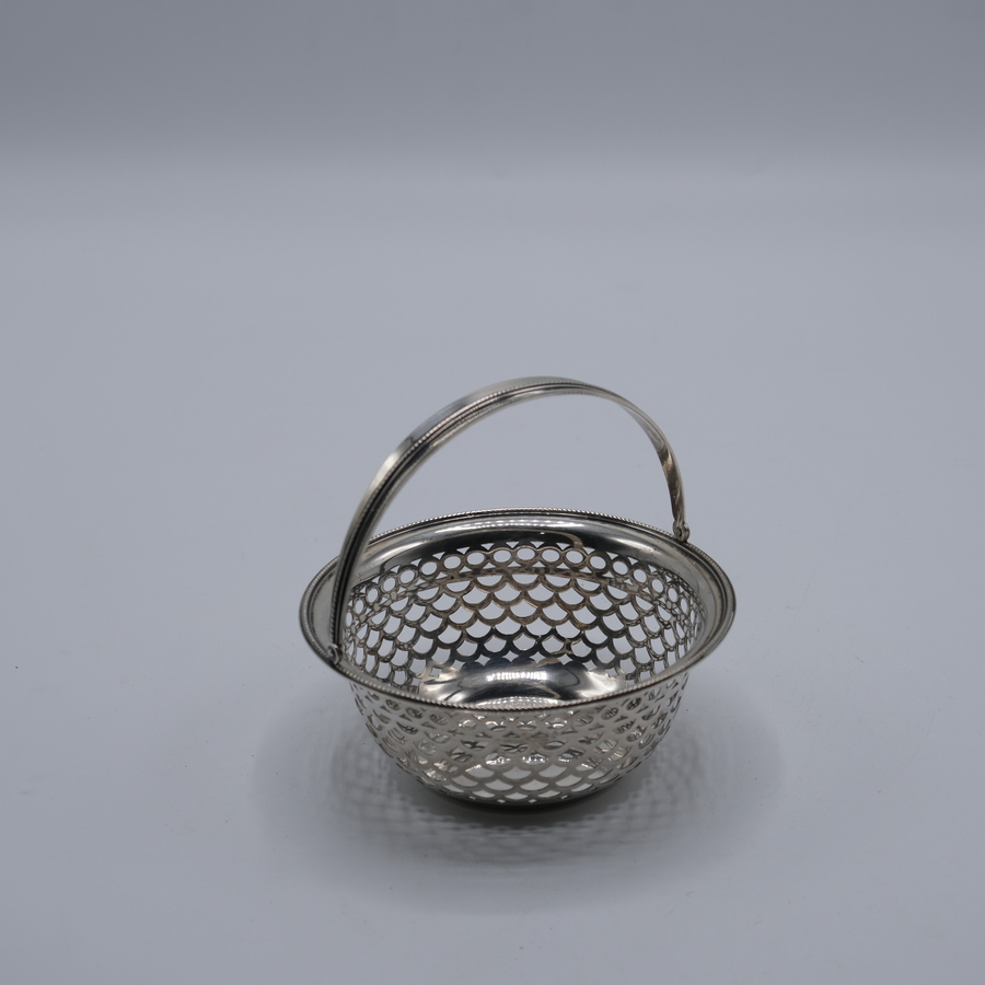 Zilveren kluwenmandje, versierd met zgn. schubdecor en voorzien van hengsel. J.M. van Kempen, Voorschoten, 1918.