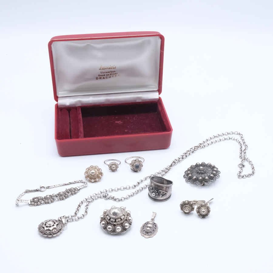 Sieradenkistje gevuld met diverse Zeeuwse knop sieraden.