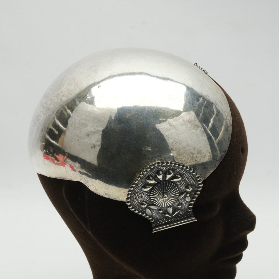 Een antiek 19e eeuws tweede gehalte (835/1000) zilveren oorijzer, met zilveren oorijzerknoppen