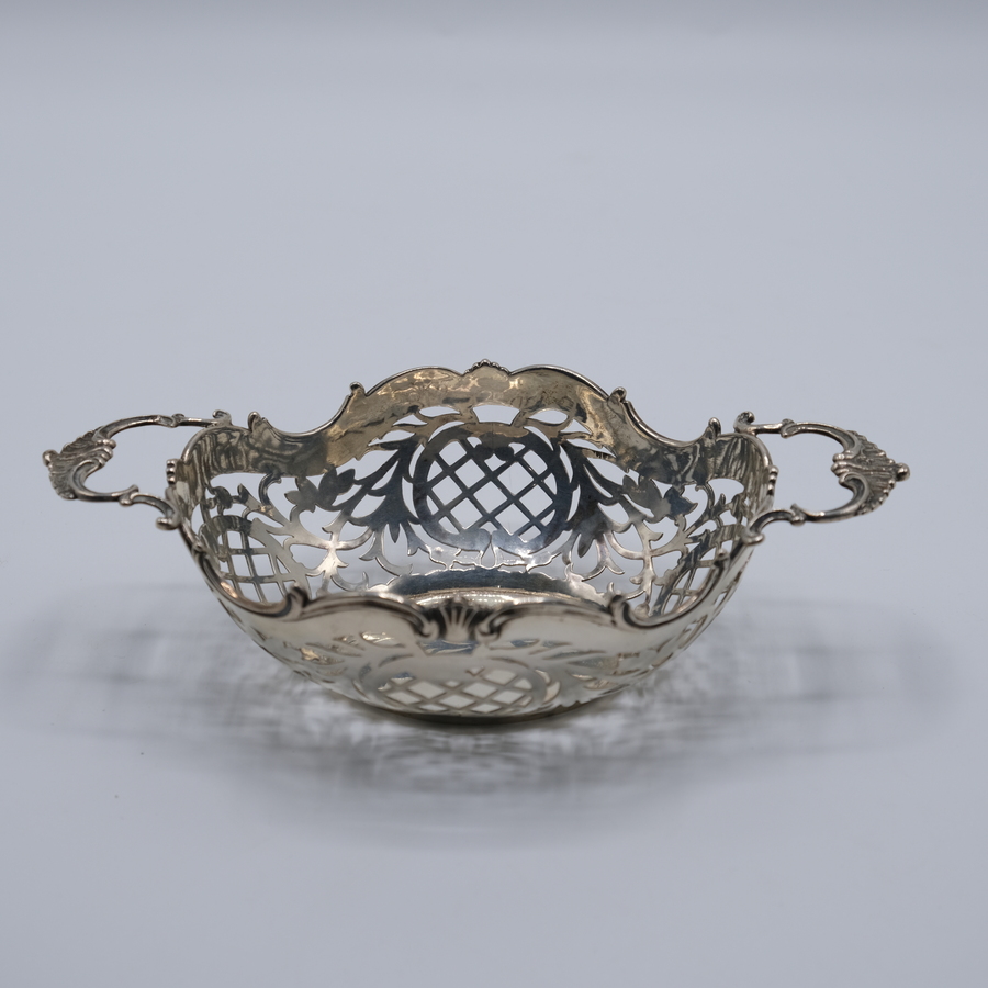 Zilveren bonbonmandje onder meer met 2 grepen.