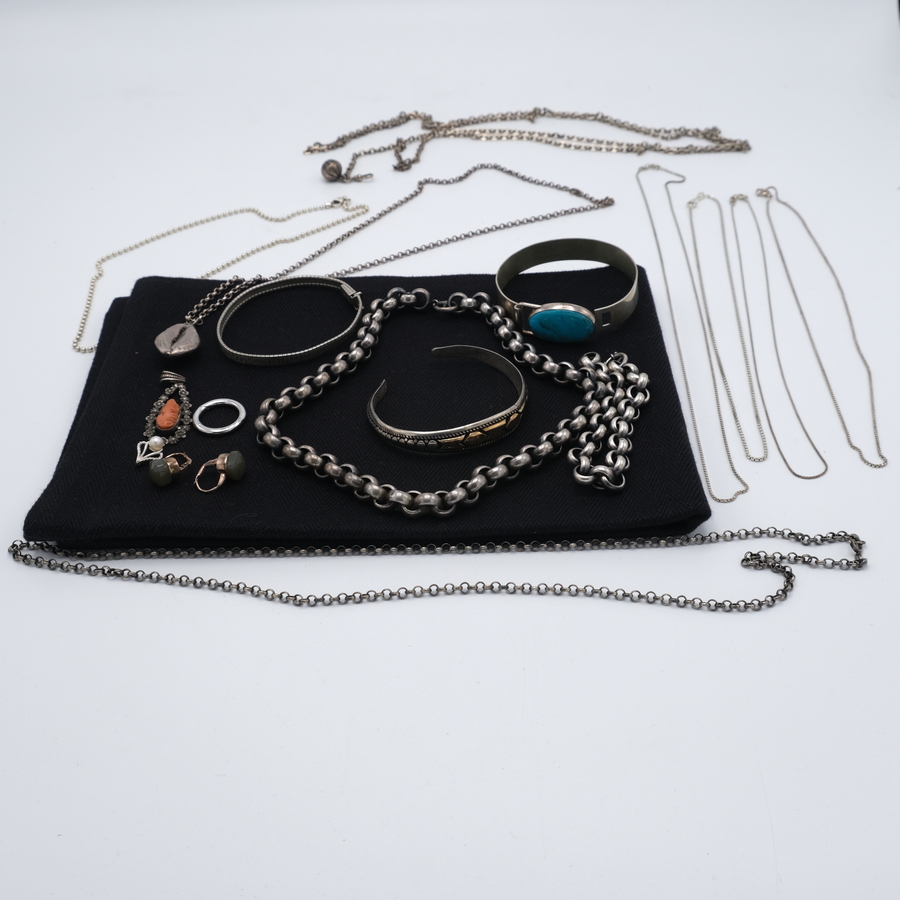 Lot diverse sieraden, waaronder een eerste gehalte zilveren armband, gemerkt ‘Siam Sterling’
