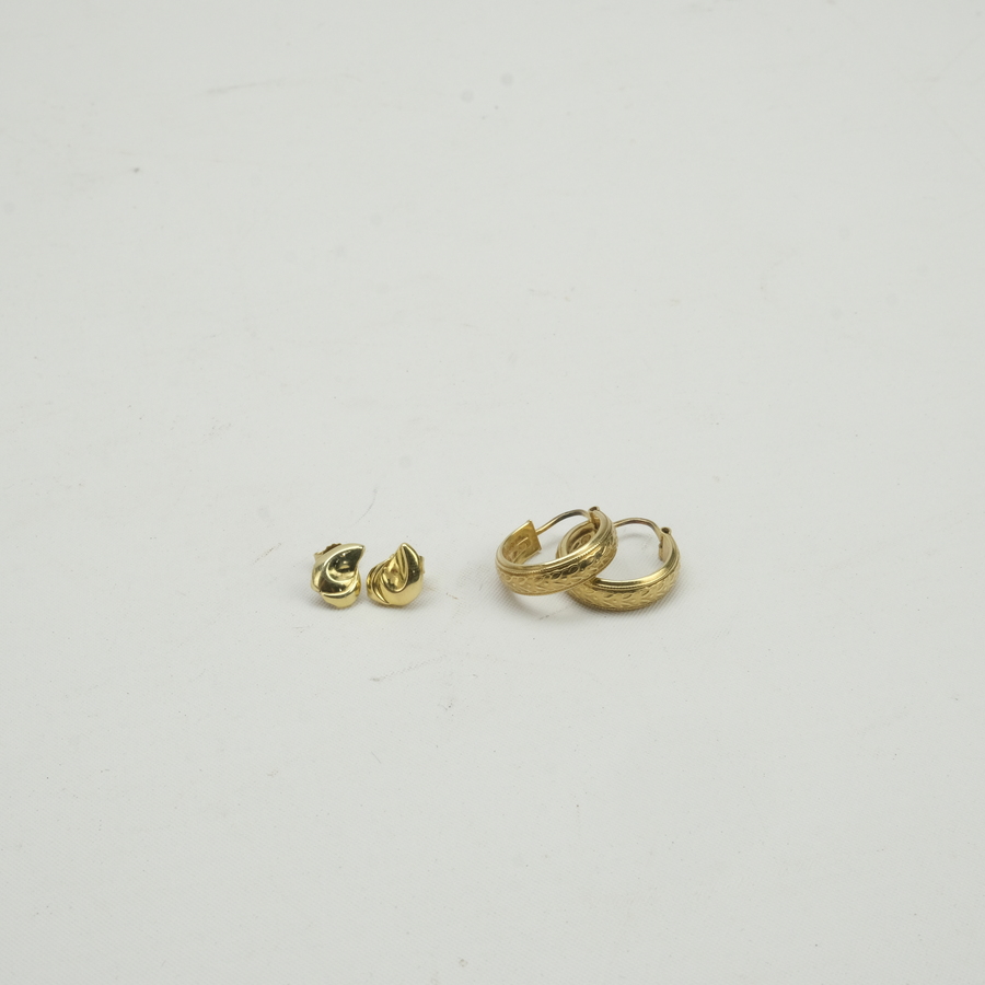 Lot van twee sets 14 karaats (585/1000) geelgouden oorbellen