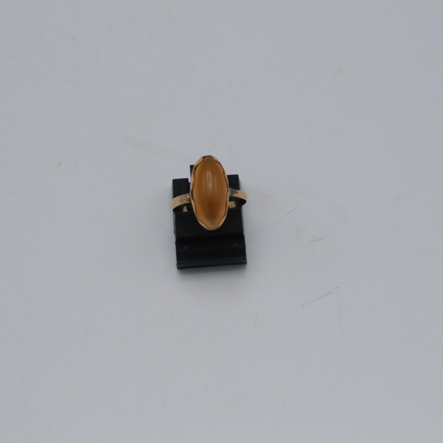 Een 14 karaats (585/1000) geelgouden damesring met ovale oranje steen.