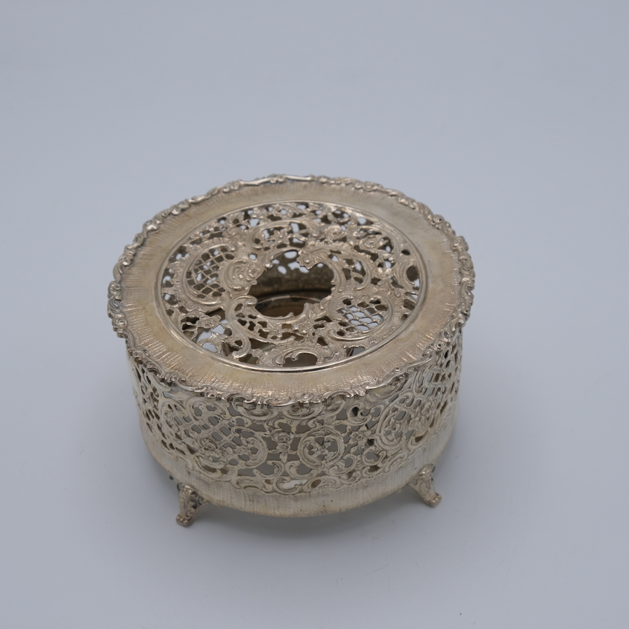 Zilveren theelichtje met deksel.