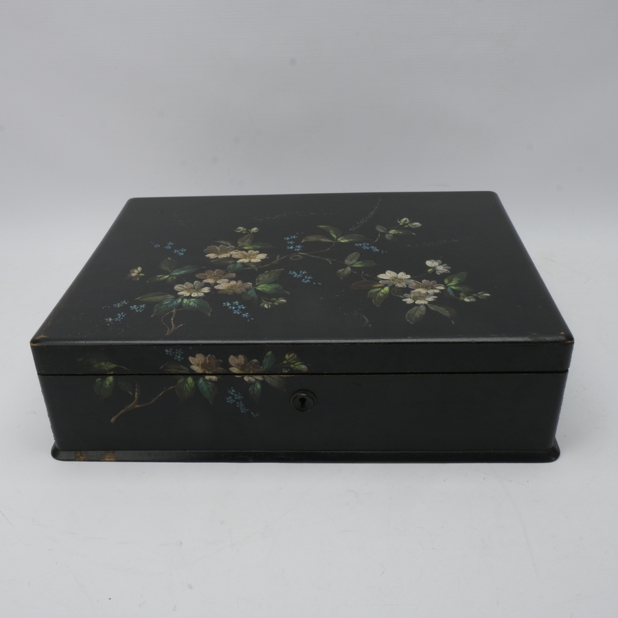 Grote houten lakwerken kist gevuld met diverse sieraden