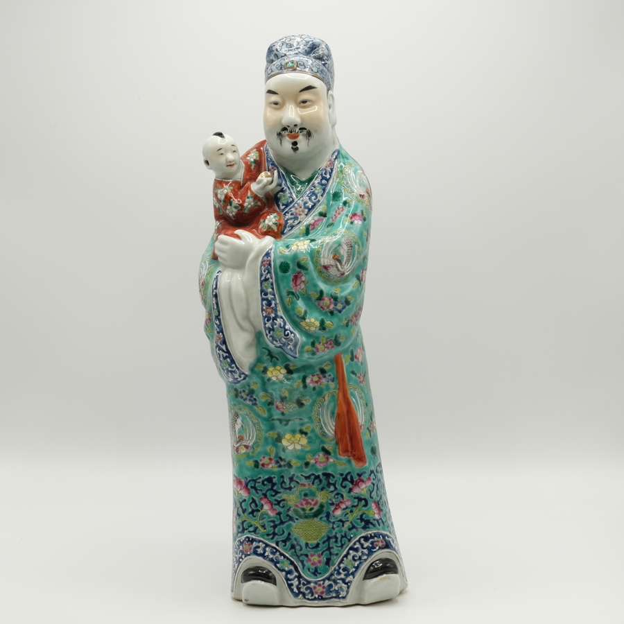 Chinees porseleinen beeld, wijsgeer. Gemerkt met karaktermerk. Ca. 1900.