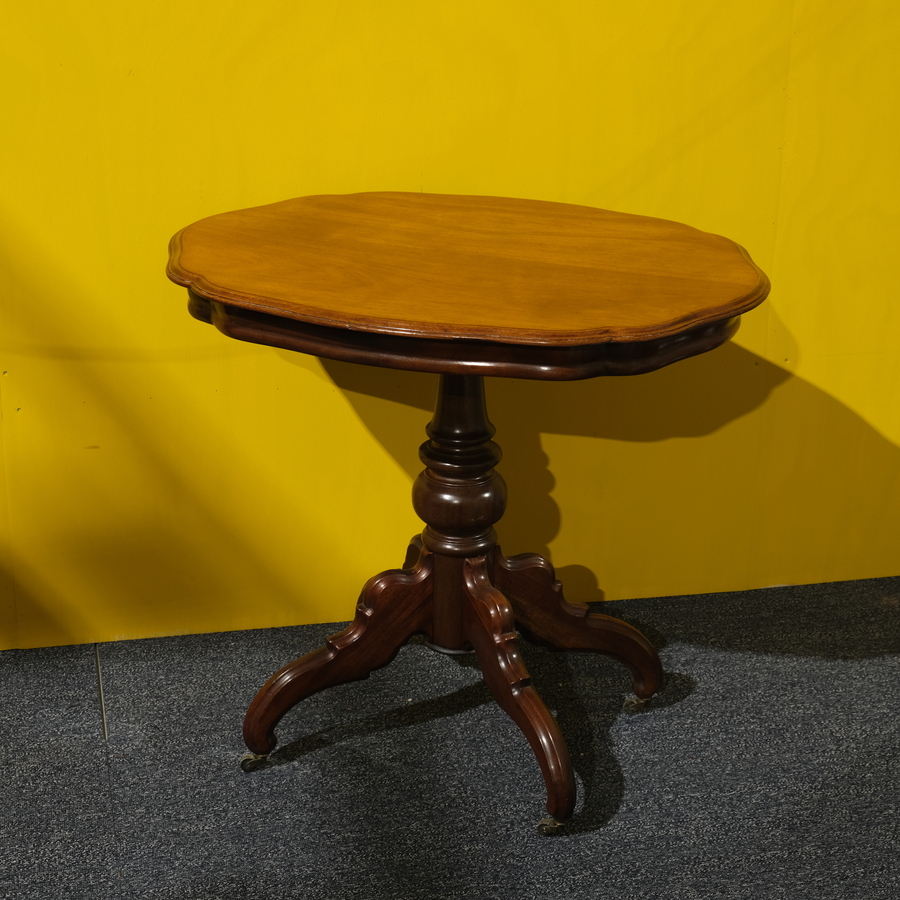 Antiek 19e eeuws mahoniehouten gefineerd driepoots tafeltje, gemerkt Horrix Den Haag.