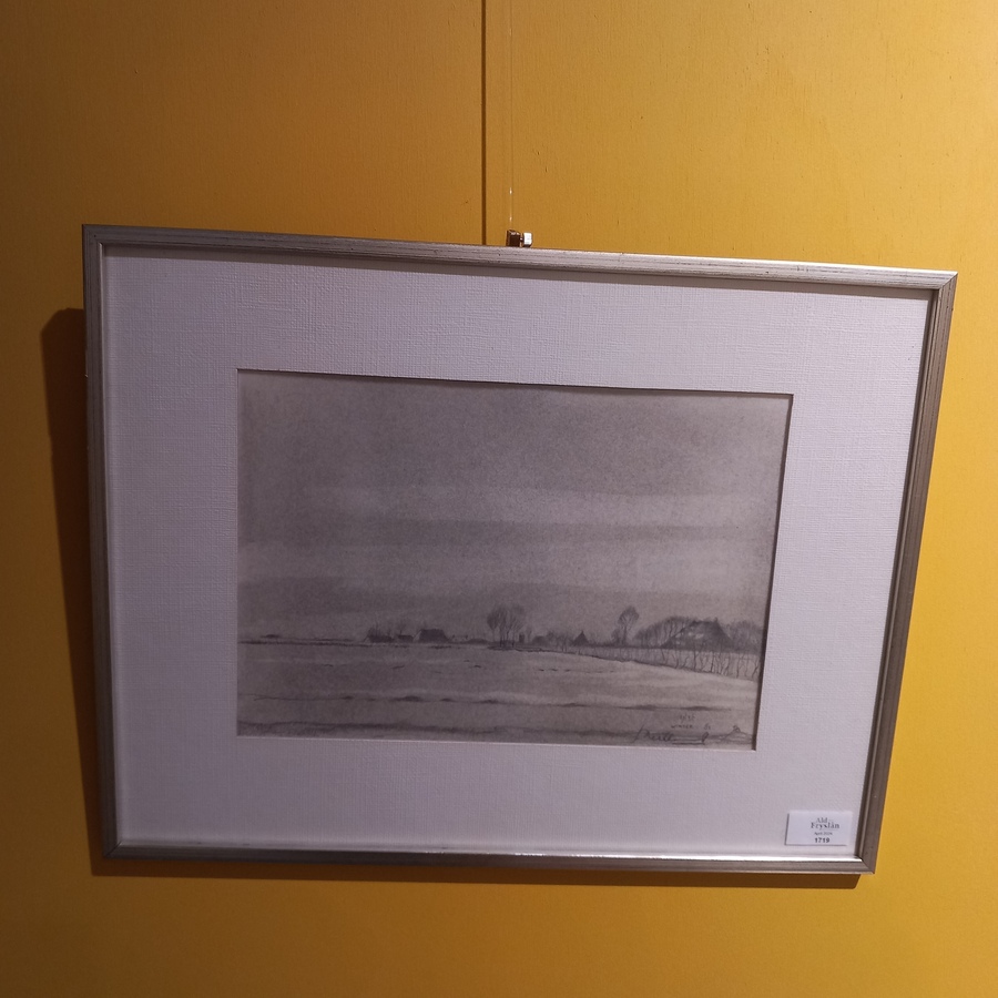 Potloodtekening. Gezicht op Ijlst. Onduidelijk gesigneerd, gedateerd 1981.