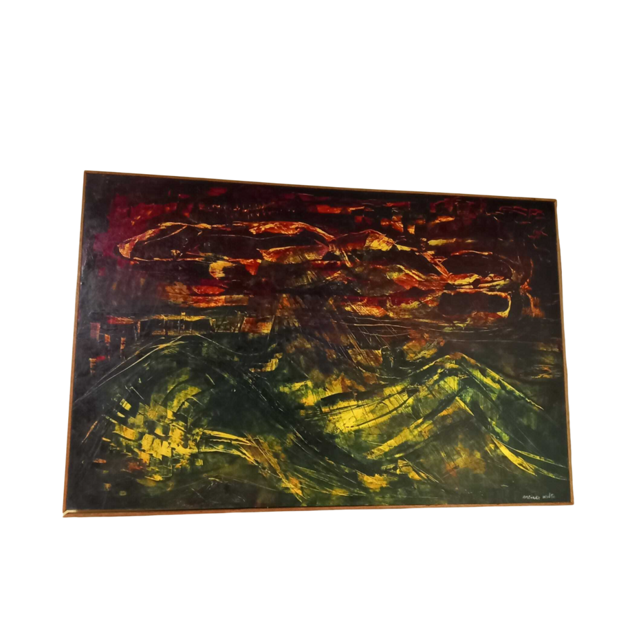 Schilderij, olieverf op board. Duin of berglandschap. Rechtsonder gesigneerd, Meinte Walta, ca. 1970.