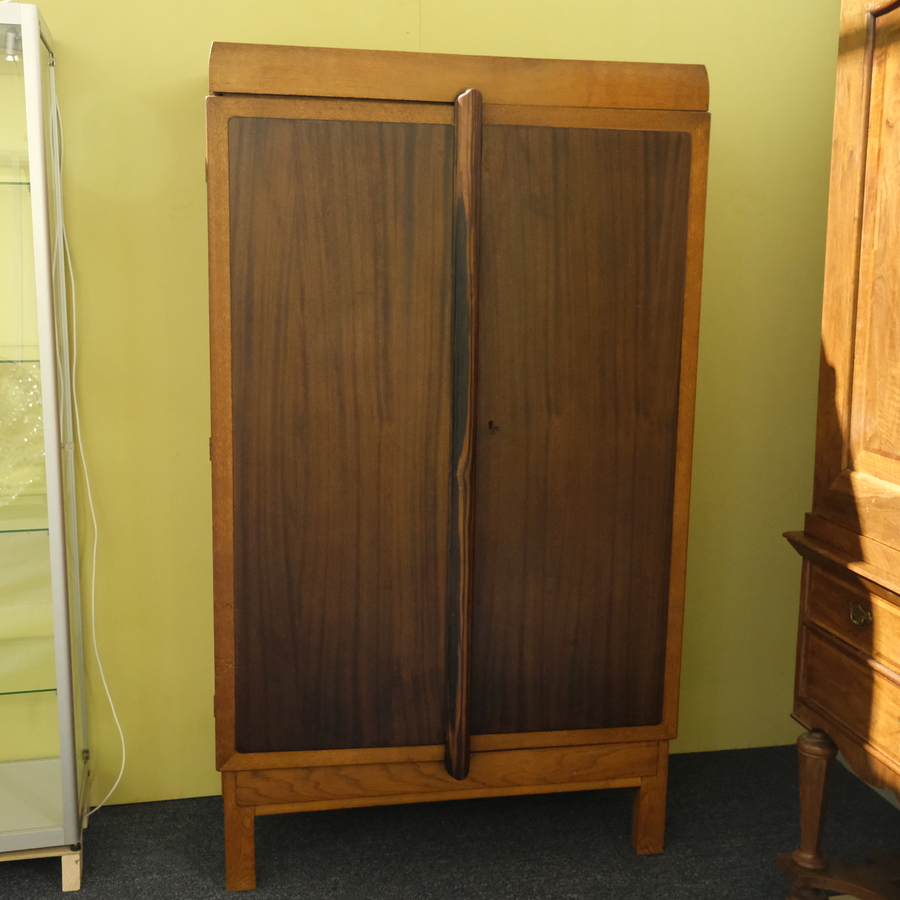 Een jaren '20 Amsterdamse School kledingkast met coromandelhouten greep