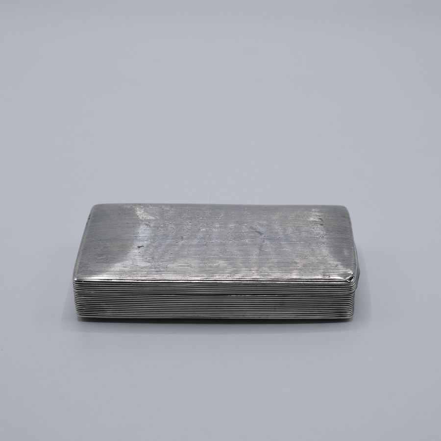 Zilveren tabaksdoos onder meer versierd met ribdecor. P. v. Gelderen, Schoonhoven, 1827.