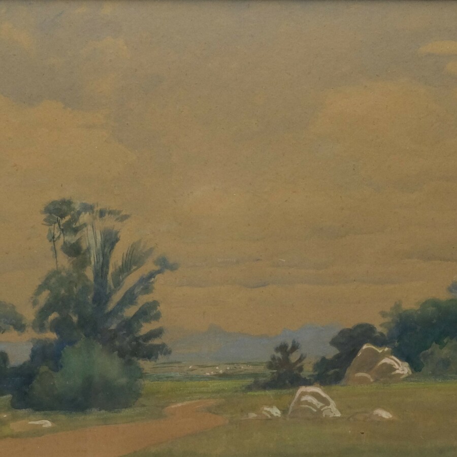 Aquarel op papier. Zomerse dag met zandweggetje. Rechtsonder gesigneerd Ernst Emil Schlatter (Zurich 1883 - Uttwil 1954), gedateerd 1952