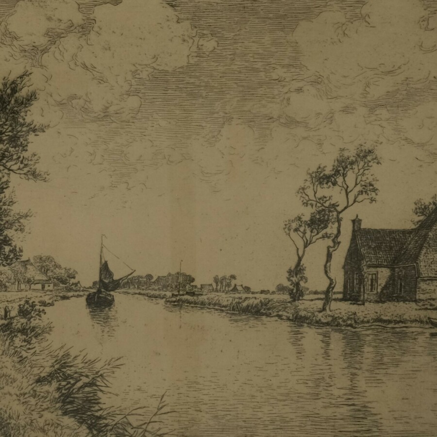 Ets, 'Dokkumer Ee bij Bartlehiem'. Rechtsonder gesigneerd Ids Wiersma (Brantgum 1878 - Dokkum 1965)