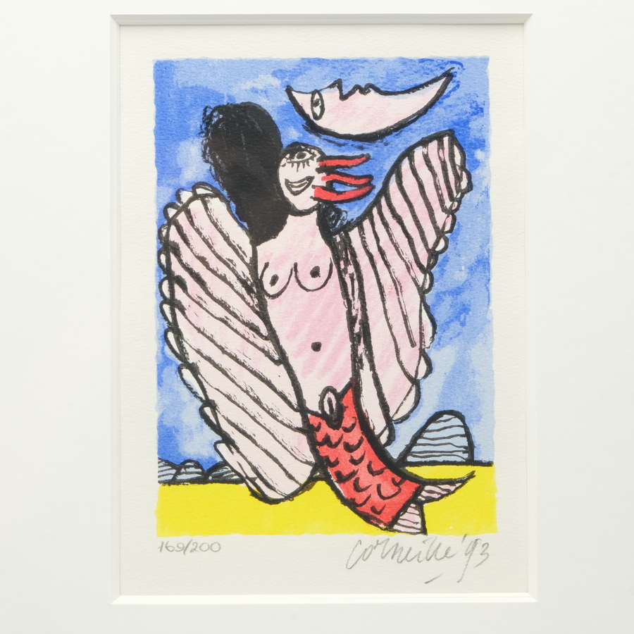 Zeefdruk, 'Memoire de Bali II'. Oplage 169/200, gesigneerd Corneille (Luik 1922 - Auvers-sur- Oise 2010), gedateerd 1993.