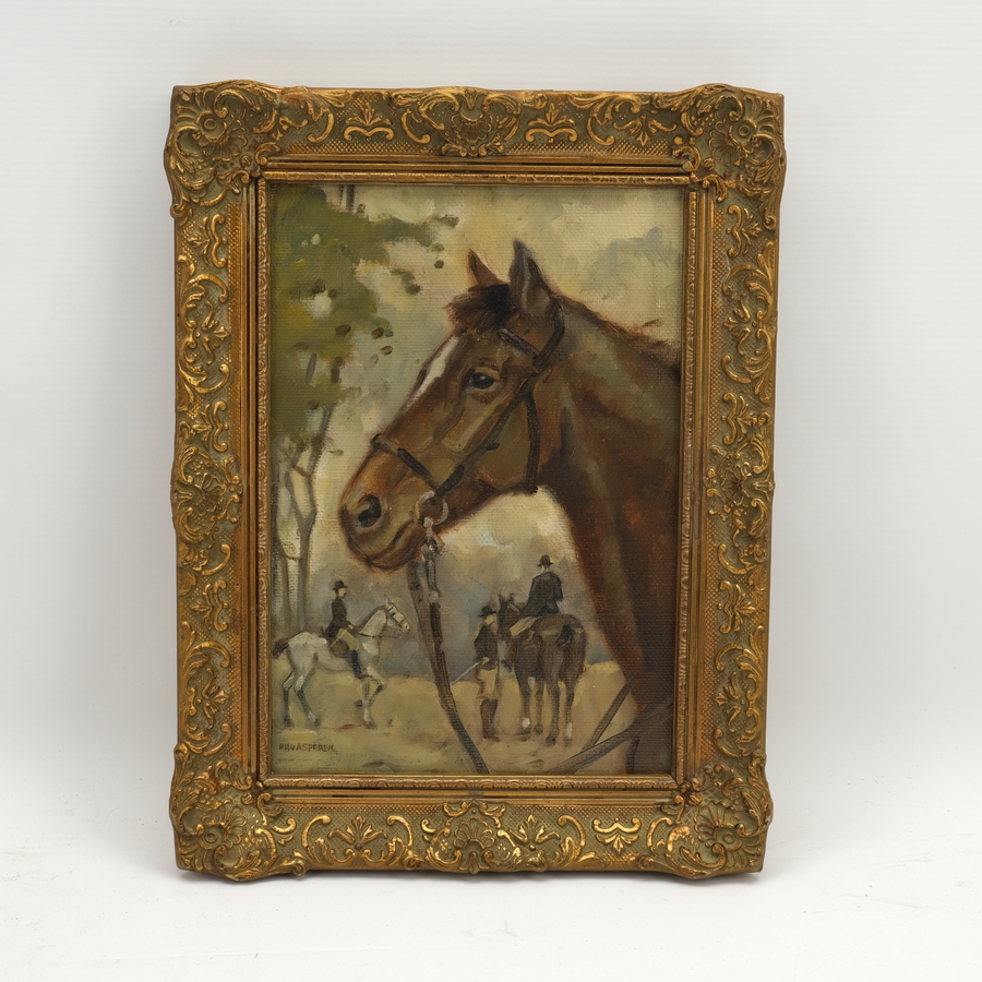 Schilderij, olieverf op doek/marouflé in vergulde ornamentenlijst. Concours-hippique in de Prinsentuin Leeuwarden. Linksonder gesigneerd Piet Hein van Asperen (Harlingen 1895 - Leeuwarden 1969)....