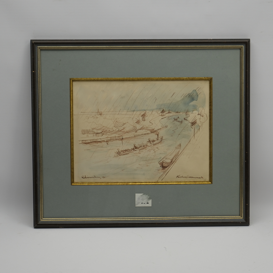 Inkttekening op papier, 'Kostverloren vaart' te Amsterdam. Linksonder gesigneerd