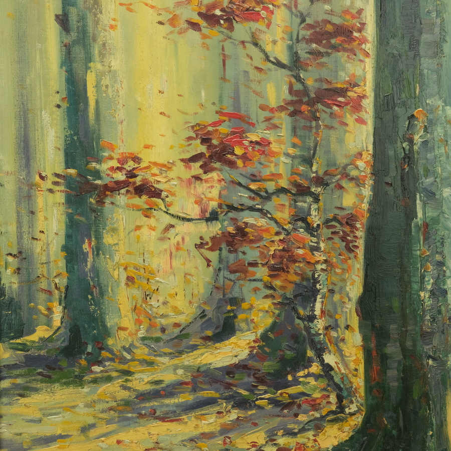 Schilderij, olieverf op doek. Herfst in het bos. Rechtsonder gesigneerd Adrianus Sibens (Roosendaal 1906 – Eindhoven 1964).
