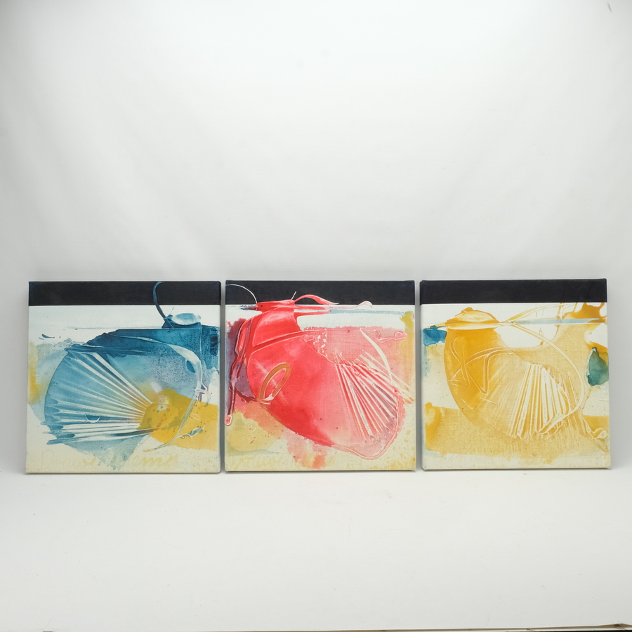 Drie schilderijen, acryl op doek. Abstracte compositie. Allen gesigneerd Douwe Idema (1953).