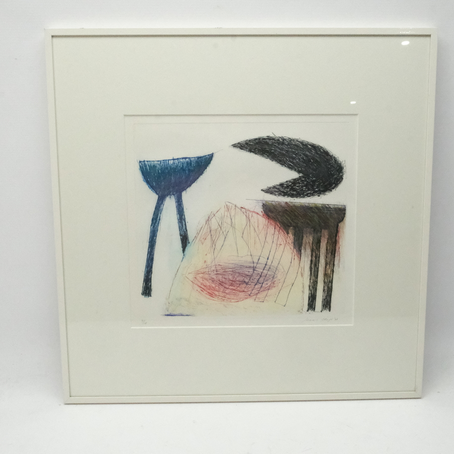 Zeefdruk, 26,5 x 39 cm. Abstracte voorstelling. Rechtsonder gesigneerd Kees Slegt (Amsterdam, 1946) en gedateerd 1996, oplage 11/15.