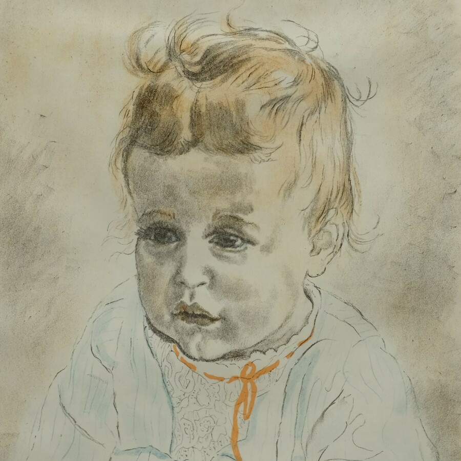 Kleurenlitho op papier. 'Portret van baby Robert Sluijters'. Rechtsonder gesigneerd (in de druk) Jan Sluijters ('s Hertogenbosch 1881 - Amsterdam 1957). Betreft een premieuitgave van de Vereenig...