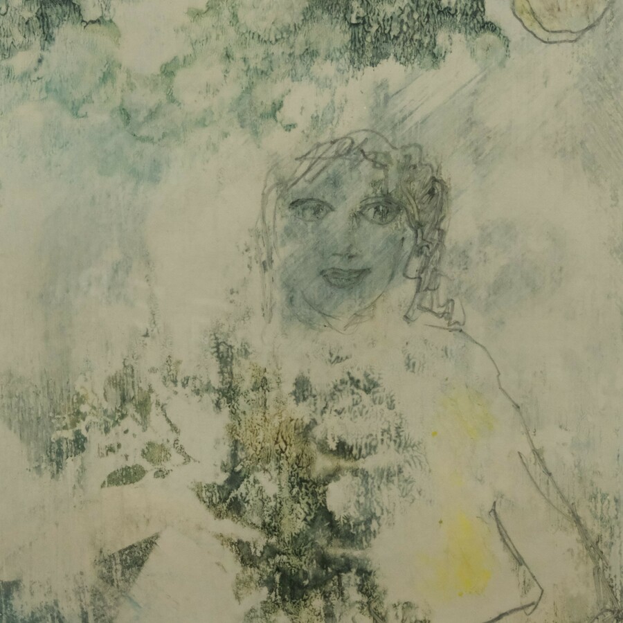 Zeefdruk/ets. ‘De Bruid’, linksonder gesigneerd Sipke Jansma (Rijperkerk 1923 – Heerenveen 2001).