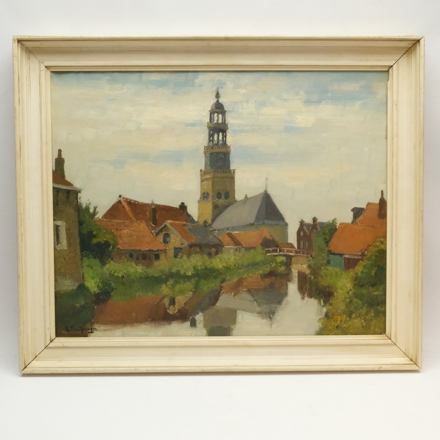 Schilderij, olieverf op doek. Oldeboarn, kopie naar G.F. van Schagen