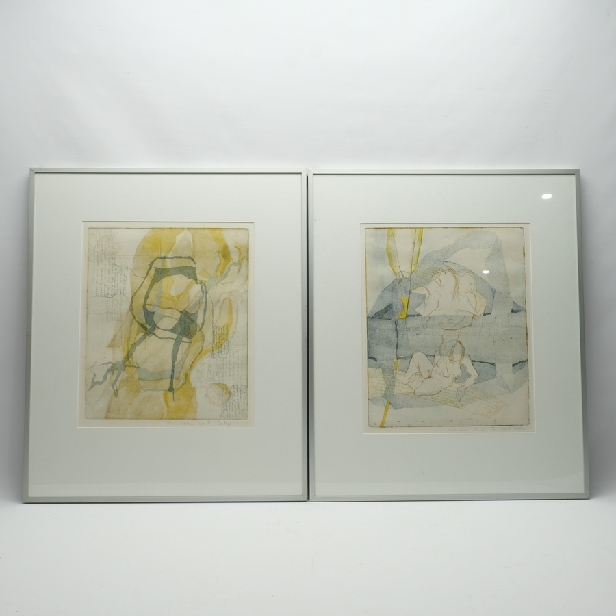 Twee zeefdrukken. Titel ‘De Brief’, gedateerd 1985 en ‘Uitgenodigd’, tevens 1985. Beide gesigneerd Maria Walther.