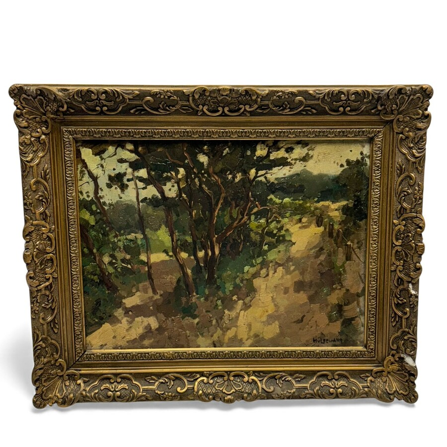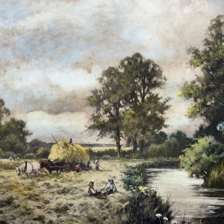 Handgekleurde litho in kapitale vergulde lijst.
