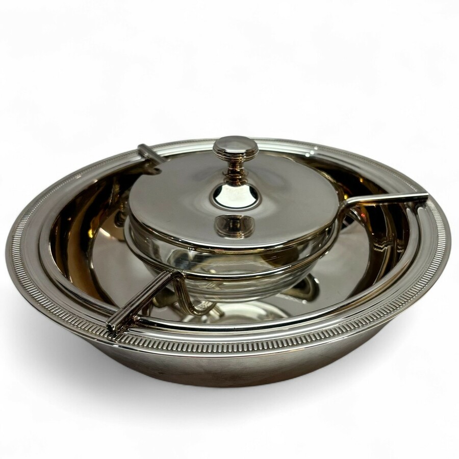 Verzilverde en kristallen kaviaar schaal
